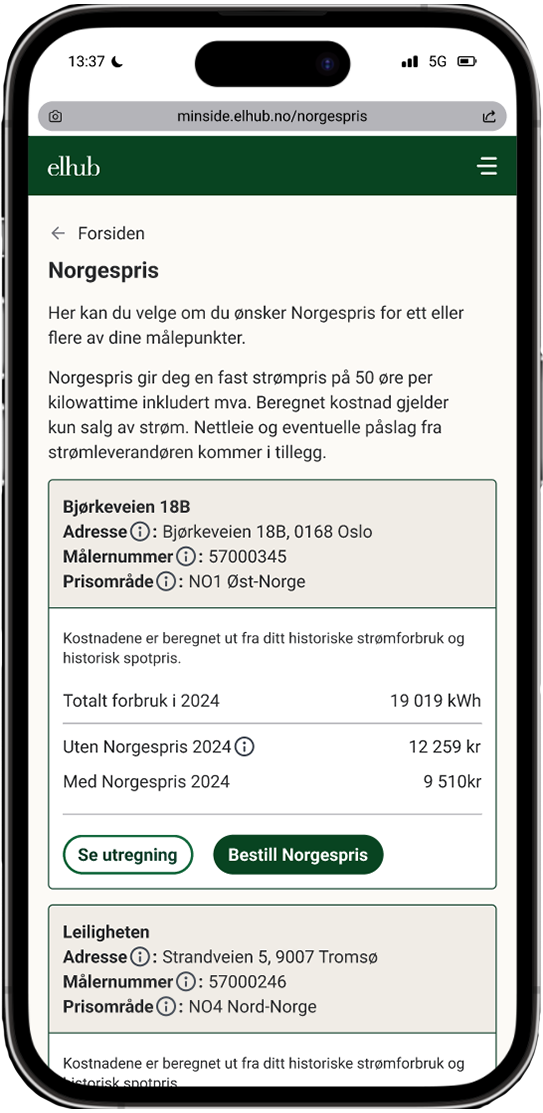🔔 Merk: Hvis du har flere strømmålere (strømmåler = strømabonnement/adresse), må du bestille Norgespris separat for hvert enkelt.