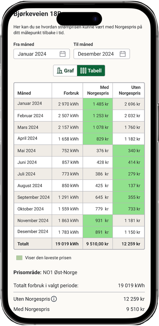 Nå kan du se hva du ville spart med Norgespris sammenlignet med dagens strømstøtte – direkte i portalen, basert på ditt eget forbruk.
